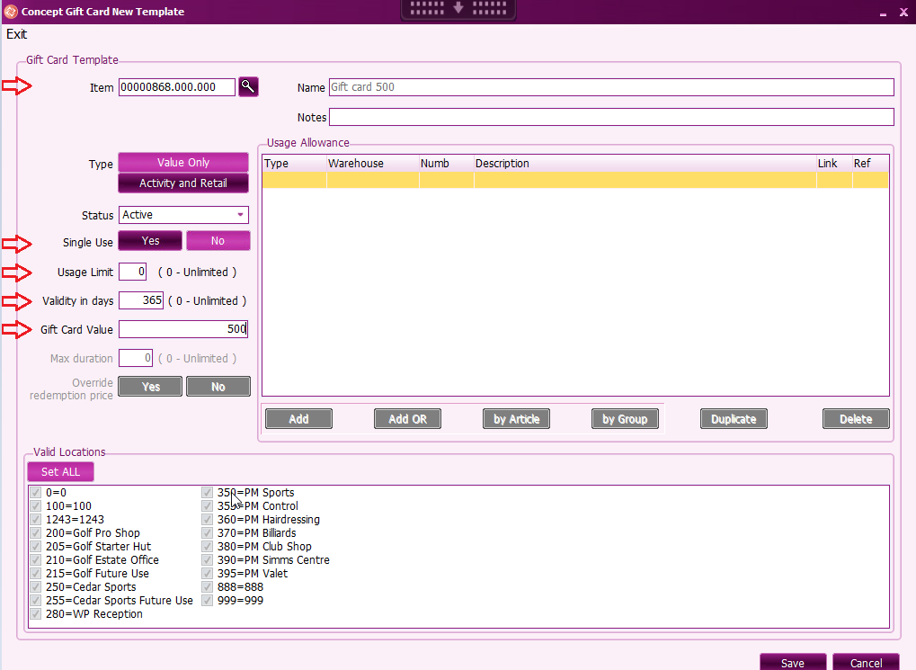 - Single Use, when set to Yes, the gift card can only be use one time, regardless if the amount was fully used.